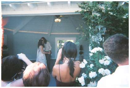 I just posted a blog on Vintage Weddings by The Knot (I’m their “vintage wedding expert” along with Sweet Emilia Jane) about table cameras, using my own wedding as an example. I basically LOVE table cameras and don’t know why people have been eliminating them- I have heard lots of harsh words about them on blogs too… The table camera shots from my wedding are my favorites. And as I mentioned on The Knot, I think they seriously need to make a comeback. Here is a little collection of pics from my wedding back in June 2006, all shot by kids, drunk folks, and people who have no idea how to take photographs… Art spills out of these cheapo little cameras…!!